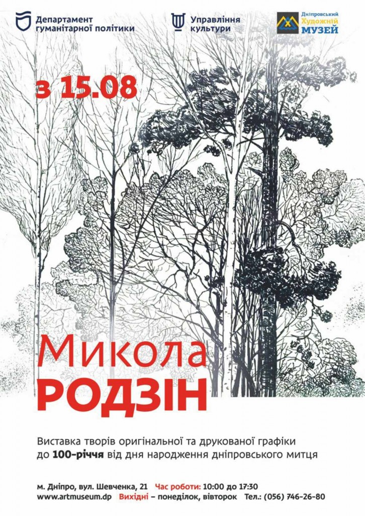 Дніпровський художній музей радий презентувати глядачам і глядачкам виставку графічних робіт Миколи Родзіна, присвячену сторіччю від дня його народження. Видатний художник-графік, ветеран Другої світової війни, офортист, майстер індустріального пейзажу, він пішов з життя в 1978