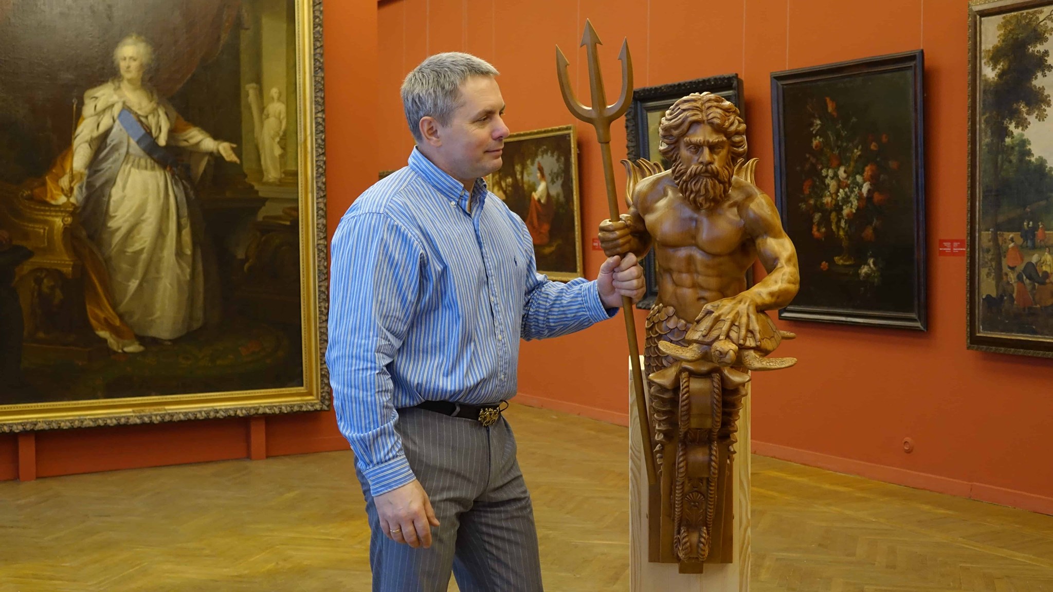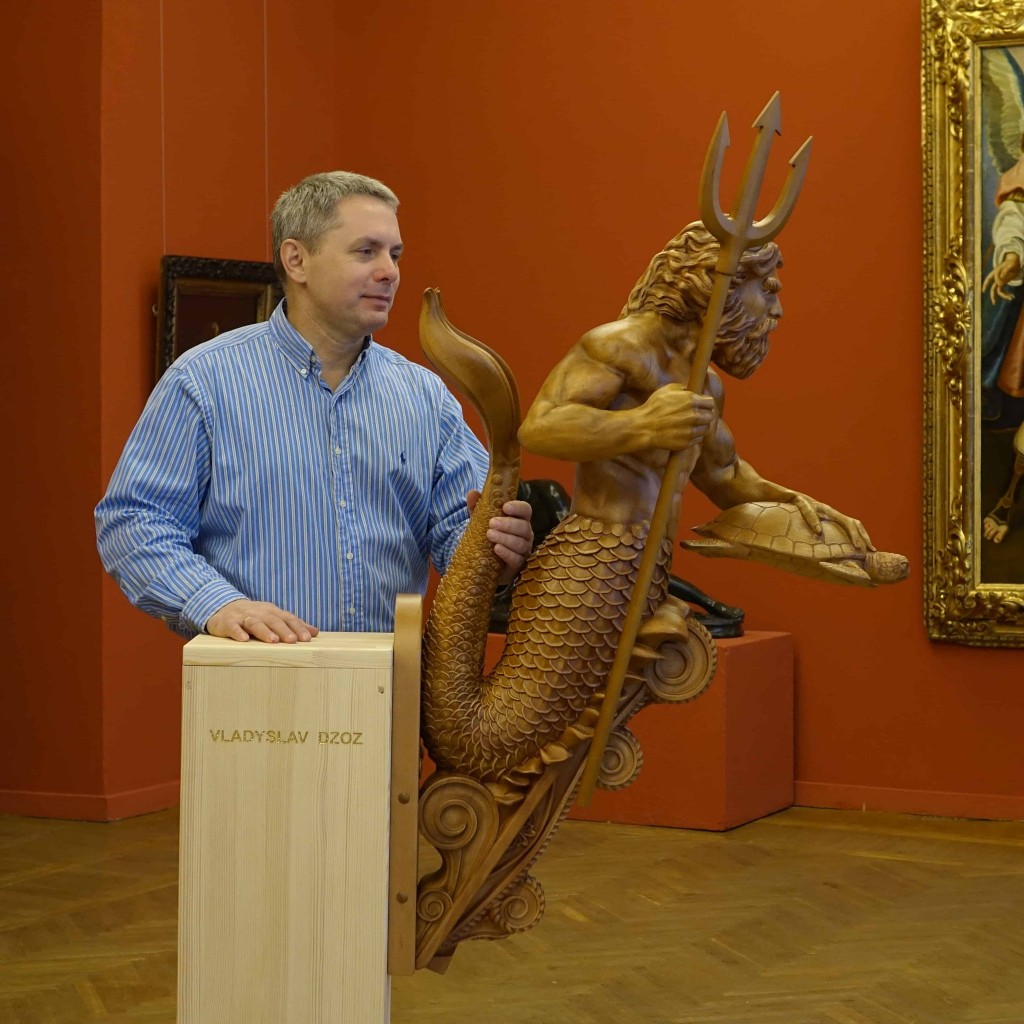 27 квітня майстер-різьбяр Владислав Дзоз презентував у залах Дніпропетровського художнього музею свій новий витвір декоративного мистецтва – скульптуру «Посейдон» (2021, дерево, різьблення, 124×50×76см). Кропітка робота над твором тривала 8 місяців і 5 днів.