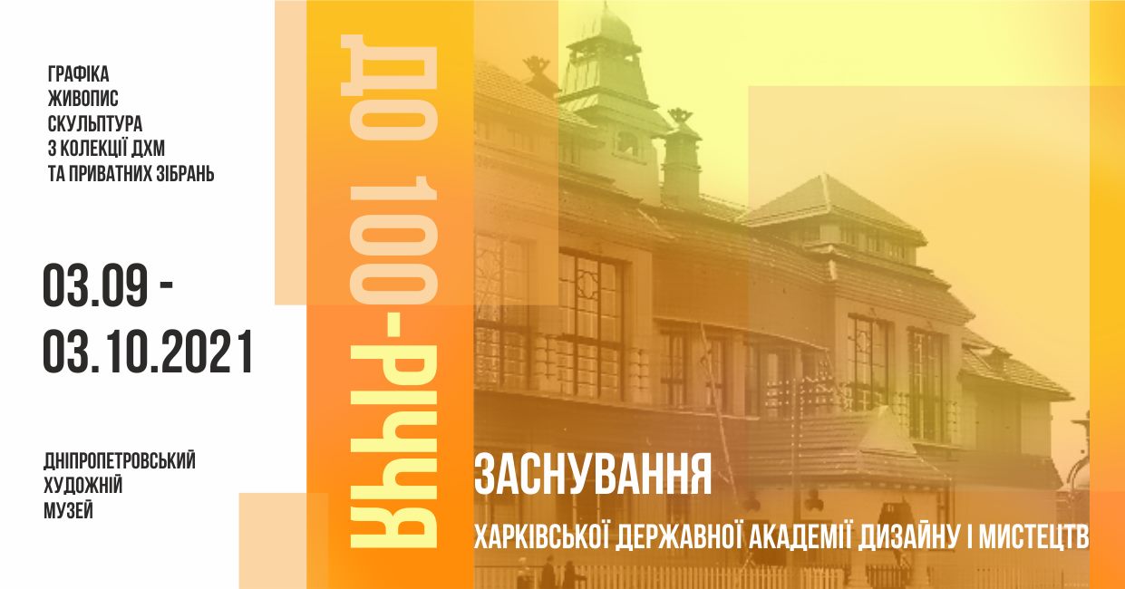 02 вересня 2021 р. о 16.00 у Дніпропетровському художньому музеї відбудеться презентація виставки, присвяченій 100-річному ювілею Харківської Державної Академії дизайну і