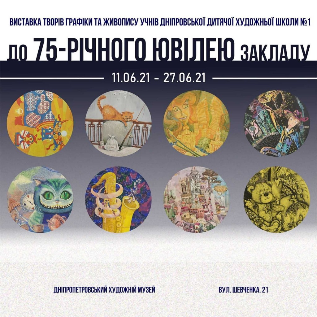 Виставка, яка присвячена поважній даті – 75-річному ювілею закладу, невипадково експонується саме уЗ 11-го червня 2021 р. у Дніпропетровському художньому музеї починає свою роботу виставка творів графіки та живопису учнів Дніпровської дитячої художньої школи №1.