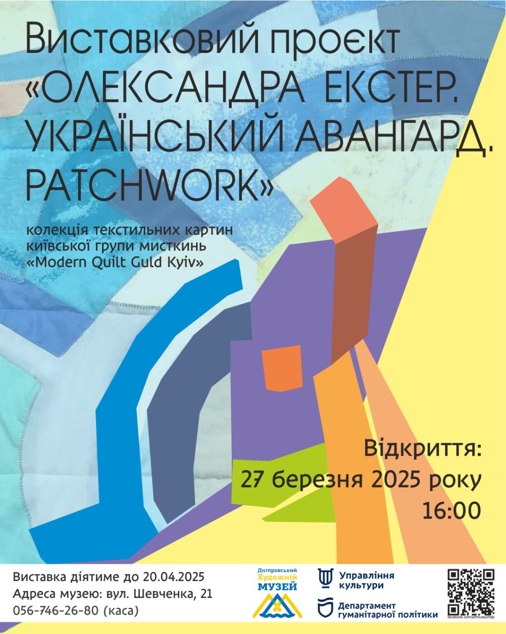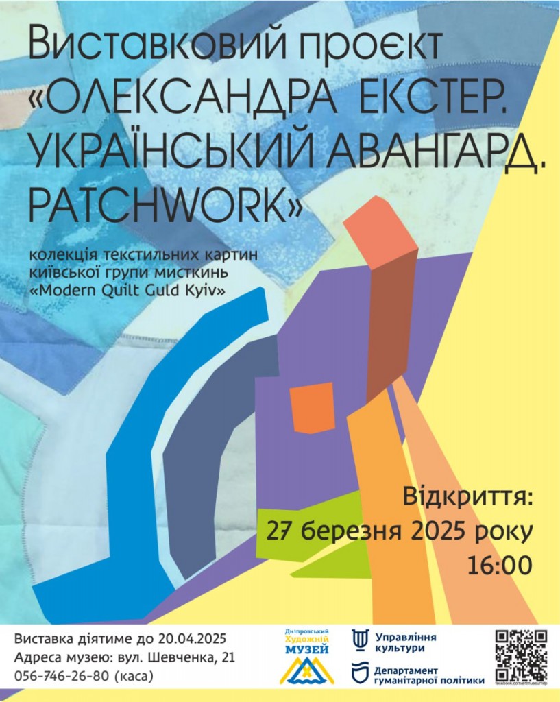 27 березня 2025 року о 16:00 в Дніпровському художньому музеї відкривається виставковий проєкт «ОЛЕКСАНДРА ЕКСТЕР. Український авангард. Раtсhwork».