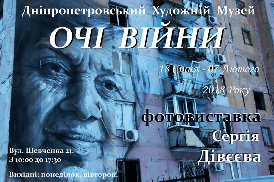 Запрошуємо відвідати фотовиставку Сергія Дівєєва “Очі війни”, яка діє до 11 лютого у Дніпропетровському художньому музеї.