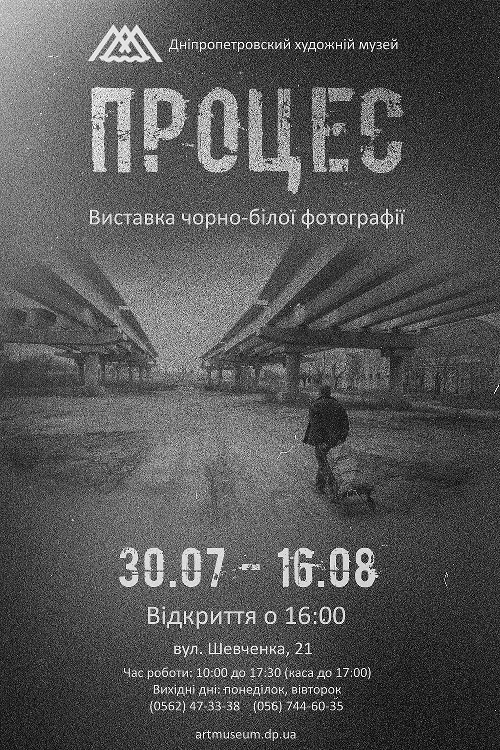 Виставка має назву «Процес». Це і процес творчого розвитку, пізнання світу, і життєвого процесу. Автори для розкриття теми вибрали техніку чорно-білої фотографії. Таким чином вони підкреслюють процес спадкоємності і послідовності розвитку фотомистецтва. І саме наш суворий, тривожний час спонукав авторів для передачі свого світосприйняття, втілення своїх емоцій та почуттів використати не кольорове, а чорно-біле зображення.