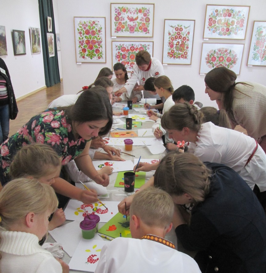 5 мая 2016 года ко Дню памяти и примирения в Днепропетровском художественном музее прошел мастер-класс по петриковской росписи для детей из семей вынужденных переселенцев из зоны проведения АТО.