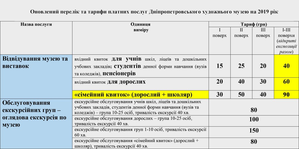 звернути увагу: розрахуватися за послуги можливо тільки у касі музею за допомогою POS-терміналу.
