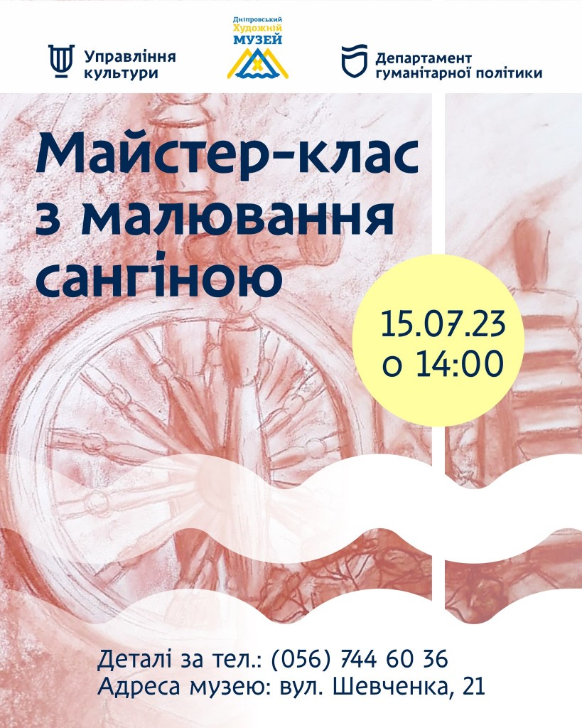 Раді повідомити, що 15 липня о 14:00 відбудеться майстер-клас з малювання сангіною.