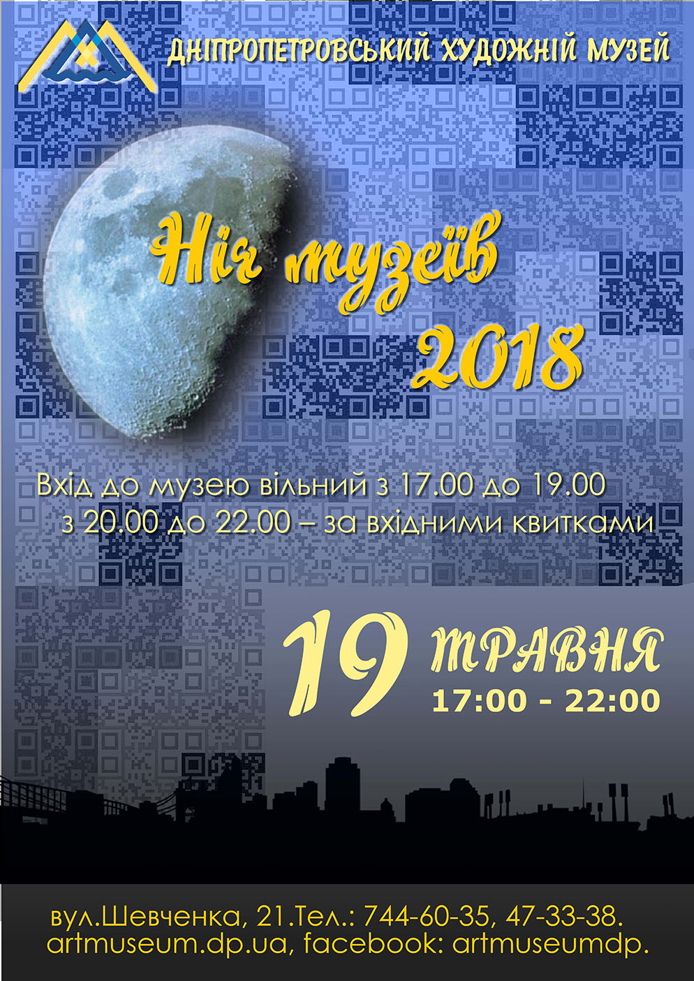 19 травня, у суботу,  Дніпропетровський художній музей восьмий рік поспіль запрошує взяти участь в акції «Ніч музеїв».