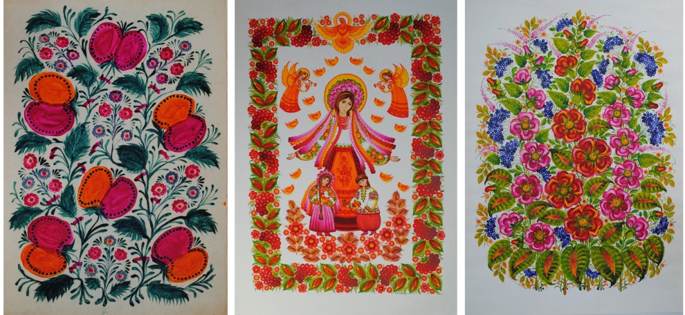Истоки петриковской росписи представлены произведениями корифеев искусства петриковки – Параски Павленко, Ирины Пилипенко и Надежды Белоконь (из частных коллекций Владимира Падун и Андрея Пикуша).