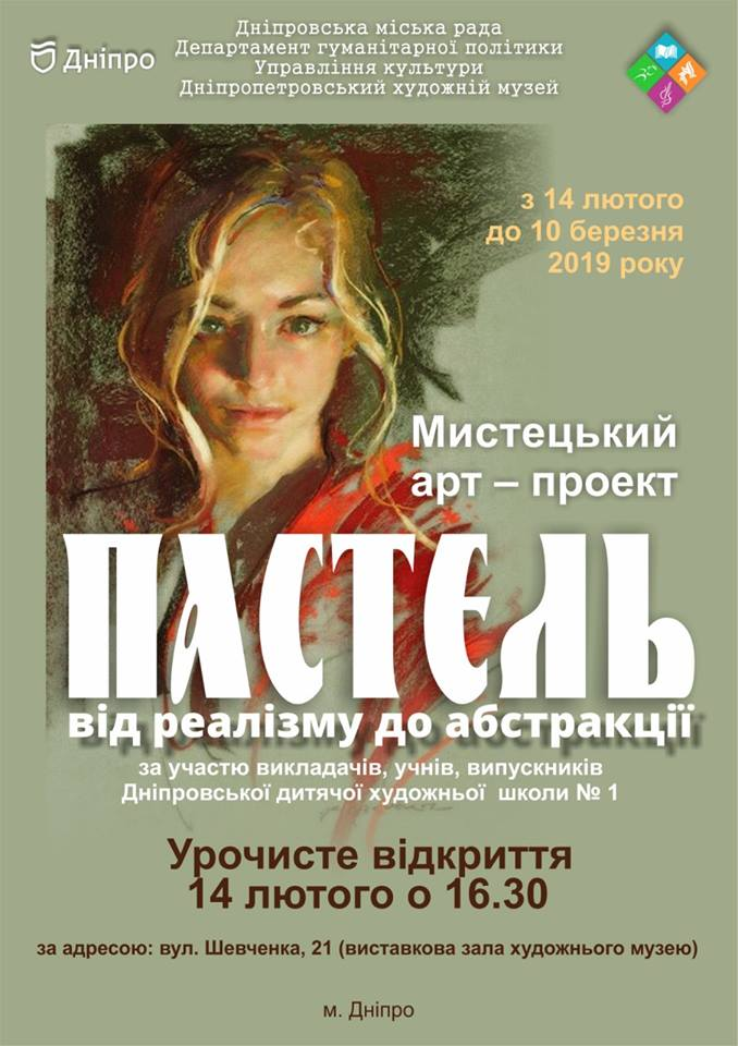 В выставочном зале Днепропетровского художественного музея с 14 февраля по 10 марта 2019 состоится арт-проект Днепровской детской художественной школы № 1, при поддержке управления культуры департамента гуманитарной политики Днепровского городского совета.