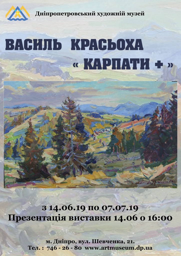14 червня 2019 року о 16:00 у виставковій залі Дніпропетровського художнього музею відбудеться презентація виставки «Карпати+» художника Василя Андрійовича Красьохи. Виставка працюватиме впродовж місяця і стане місцем, де можна буде не лише насолодитися професійним мистецтвом, а й впорядкувати думки