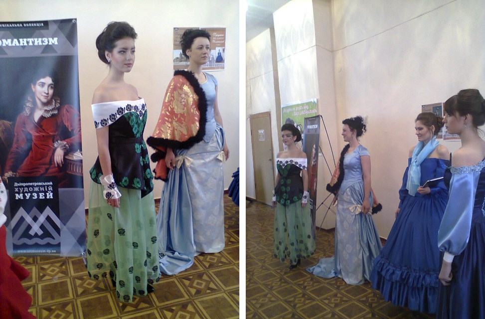 Днепропетровском художественном музее. На суд зрителей были представлены реконструкции исторических костюмов согласно живописных портретов. В качестве источника вдохновения было предложено обратиться к трем картинам из собрания музея, которые отражают светский костюм горожанки эпохи XIX века Екатеринослава: работа Венига К. Б. «Женский портрет» и картины неизвестных авторов украинской школы — «Портрет неизвестной в голубом» и «Портрет Марии Михайловны Князевой».