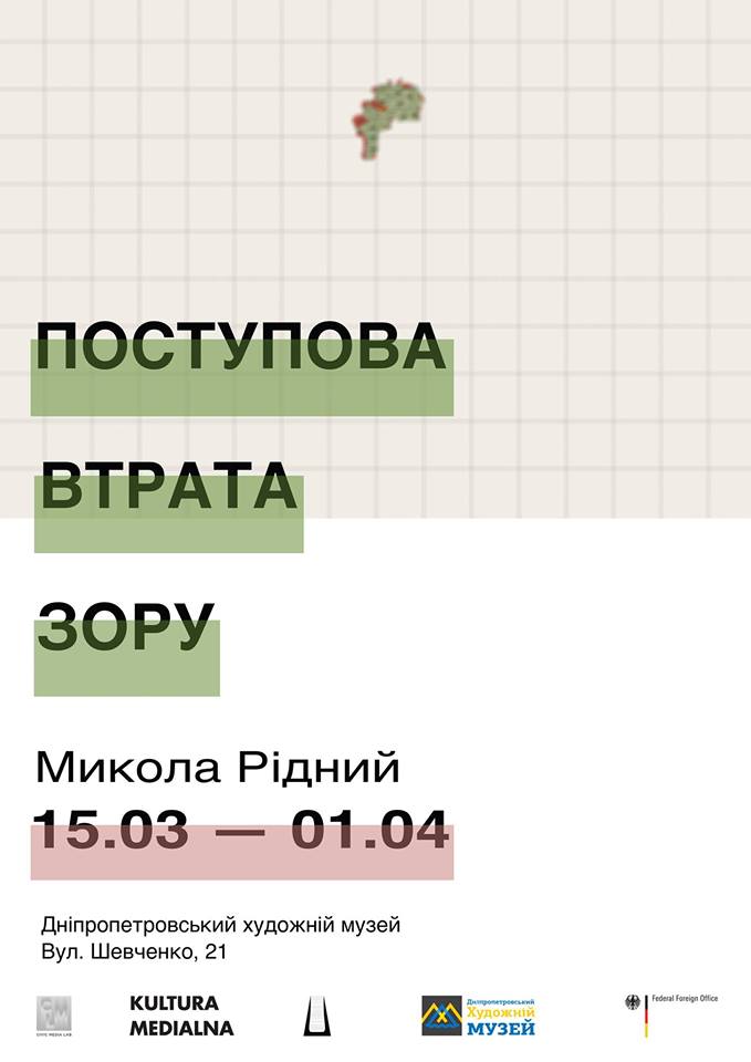 15 марта в 18:00 в Днепропетровском художественном музее Николай Ридный представит новый творческий проект «Постепенная потеря зрения». Это – серия фотоколажных работ и рисунков последних лет, в15 березня о 18:00 у Дніпропетровському художньому музеї Микола Рідний представить новий творчий проект «Поступова втрата зору». Це — серія фотоколажних робіт та малюнків останніх років, в яких автор досліджує механізми сприйняття насильства та війни через їх