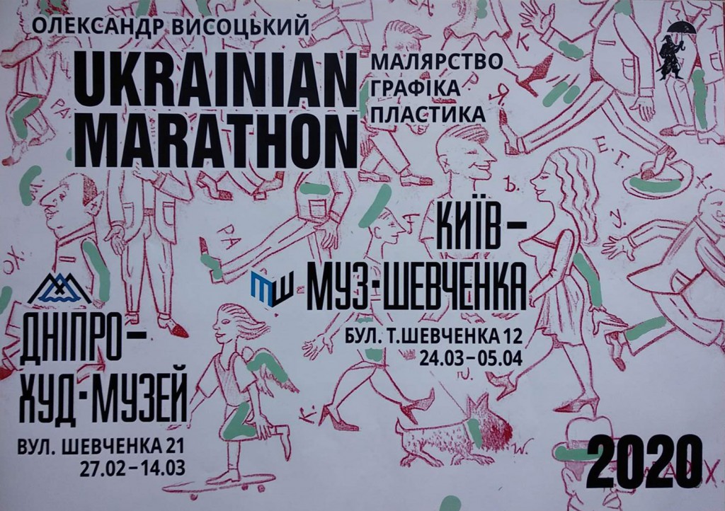 Це – третя персональна виставка майстра у стінах художнього музею, перші дві відбулися 2006 і 2015 рр. Назва виставки – “Український маратон” – не випадкова. Ототожнюючи себе з Україною і повсякчас відчуваючи себе українцем, Олександр Висоцький наполегливо продовжує в своїх творах тему рідної країни: української історії, українського козацтва, міського побуту. Йому болить все, що відбувається у ріднім краї. Це – погляд автора з-за кордону на рідну країну.