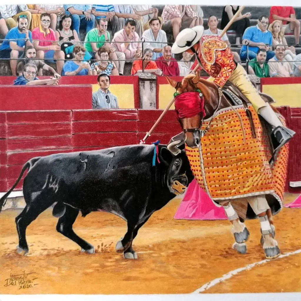 – Me gusta el cuadro “Suerte de varas” porque tiene emoción, colores vivos y líneas dinámicas que crean una sensación de movimiento y dramatismo en la arena.
