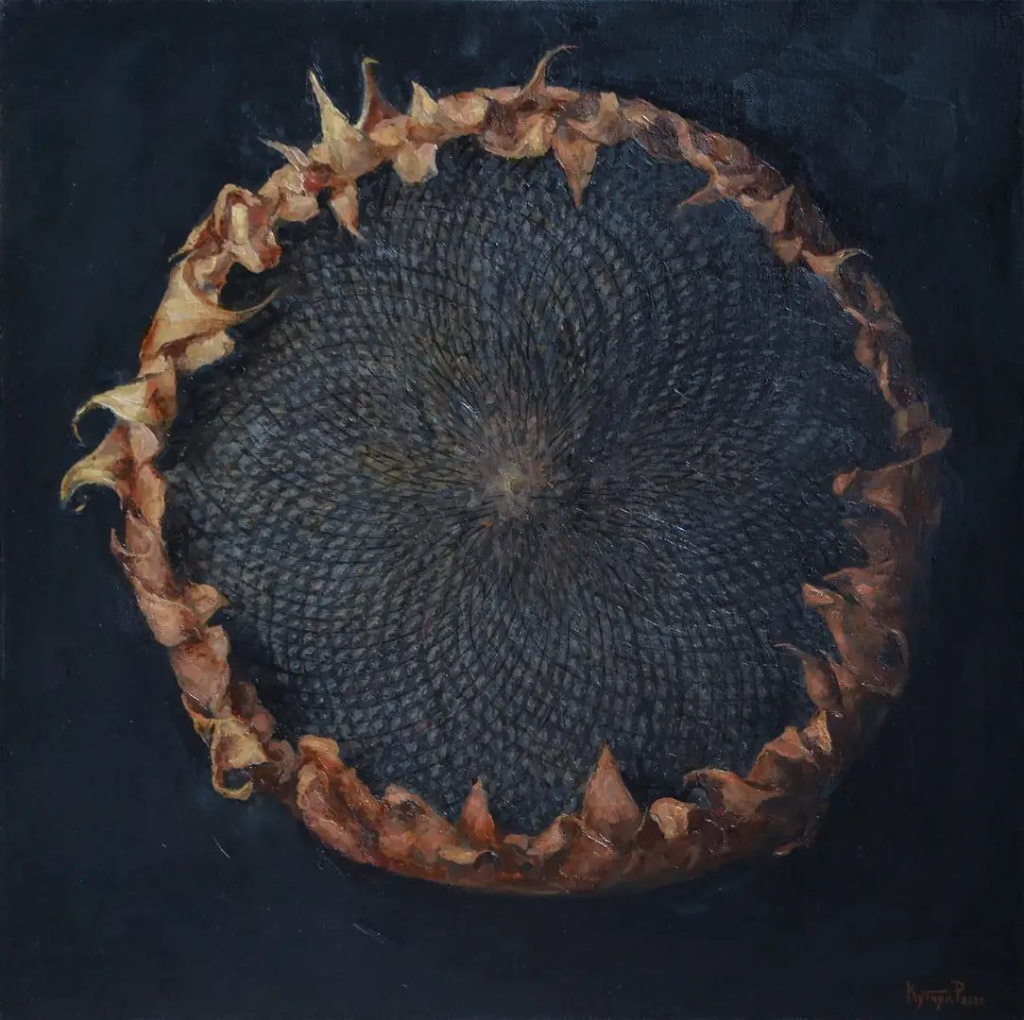 Мені подобається робота «Primavera 2022», тому що вона являє собою символ сонця, ретельно намальованого насіння, добре підібраного кольору насіння і сухого листя.
