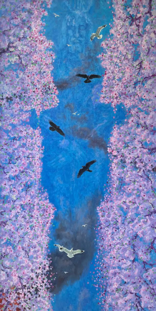 • Me gusta mucho la obra “Primavera 2022”. Los árboles son increíbles y los pájaros volando . Y cuando miras la foto, te sientes tranquilo. Gracias al artista que hizo este cuadro. Gracias a todos los que participaron en la exposición de arte. ¡Todas las imágenes son mágicas!