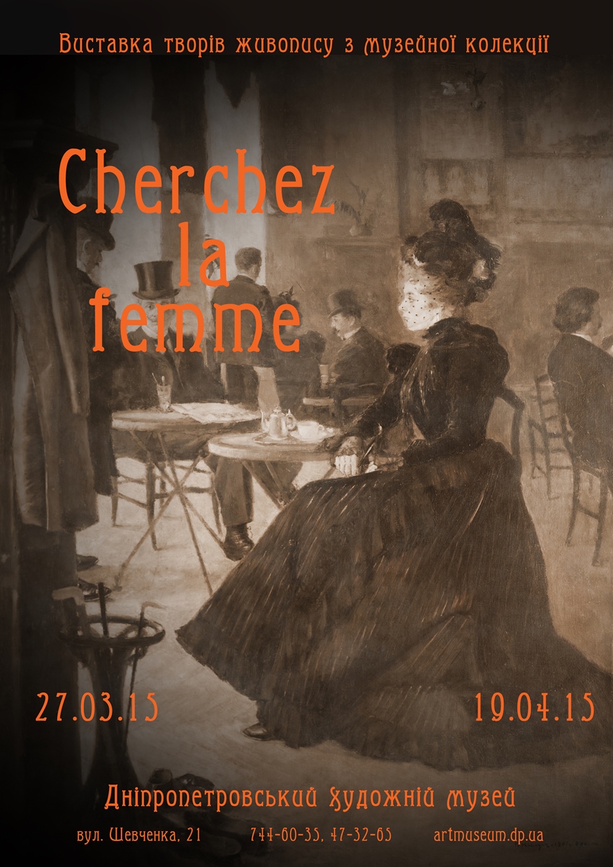 Тел. 744-60-35, 47-33-38 нині, цієї весняної пори, в час чи не найвищого духовного піднесення, надтонких душевних порухів, Дніпропетровський художній музей запрошує усіх охочих долучитися до «пошуків» Жінки, відвідавши виставку творів живопису з музейного зібрання «Cherchez la femme», зміст якої може бути стиснутим до самої її назви, вказуючи на віковічну модель відносин «митець — жінка».