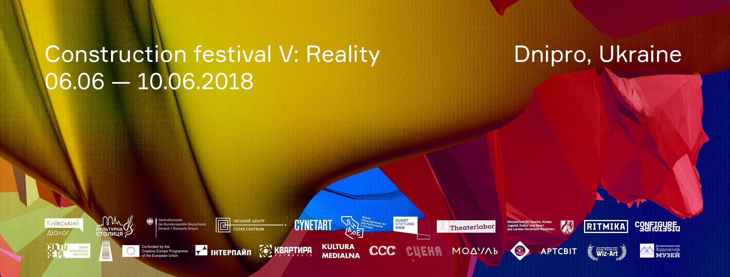 Фестиваль «Конструкция», организованный ОО «Культура медиальная», состоится при поддержке городской программы “Культурная Столица”, Генерального Консульства Германии в Донецке (офис в Днепре), Чешского центра в Киеве, Института Адама Мицкевича, CYNETART festival, Программы Креативная Европа, SHAPE platform, Киевский Диалог, НТЗ “Интерпайп”.