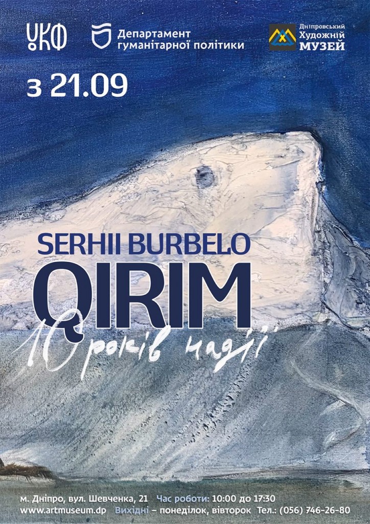 «Qirim. 10 років надії» – це чергова частина культурологічного проєкту авторства Сергія Бурбела, який реалізують за підтримки Українського культурного фонду (програма «Стипендія на відновлення культурно-мистецької діяльності»). Проєкт пройшов кілька етапів трансформації, він щоразу поповнюється новими творами. Цього року можна буде побачити – і почути! – картини з інтегрованими текстами кримськотатарських пісень з музичного альбому Джамали «Qirim». Ці роботи продовжать серію з 40 картин однойменного культурологічного проєкту «Qirim», який було розпочато 2013 року.